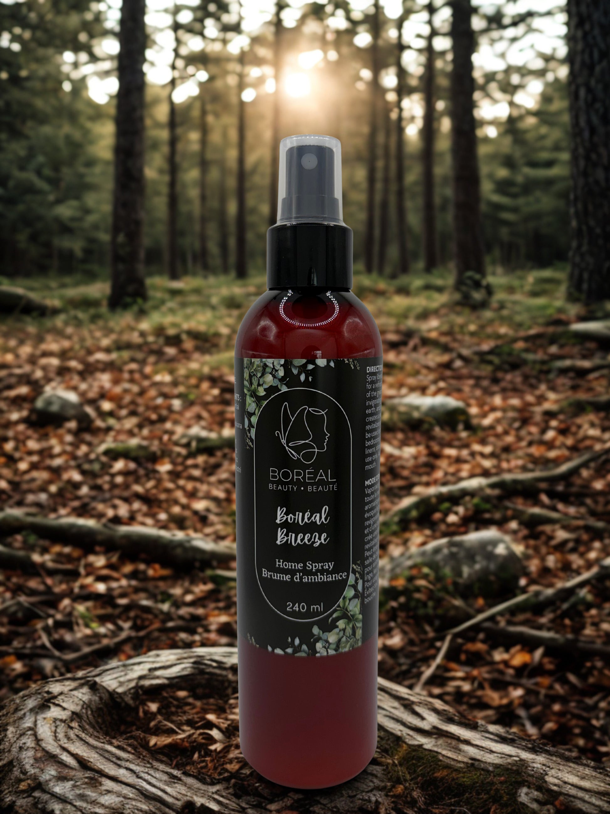 Bring the essence of the northern wild into your home with Boréal Breeze, an aromatic home spray crafted with a blend of pure essential oils from the Boreal forest. Infused with invigorating notes of Pine, Cedarleaf, Black Spruce, Oakmoss, Ho Wood, and Juniper, this refreshing mist recreates the crisp, calming air of the Canadian outdoors.